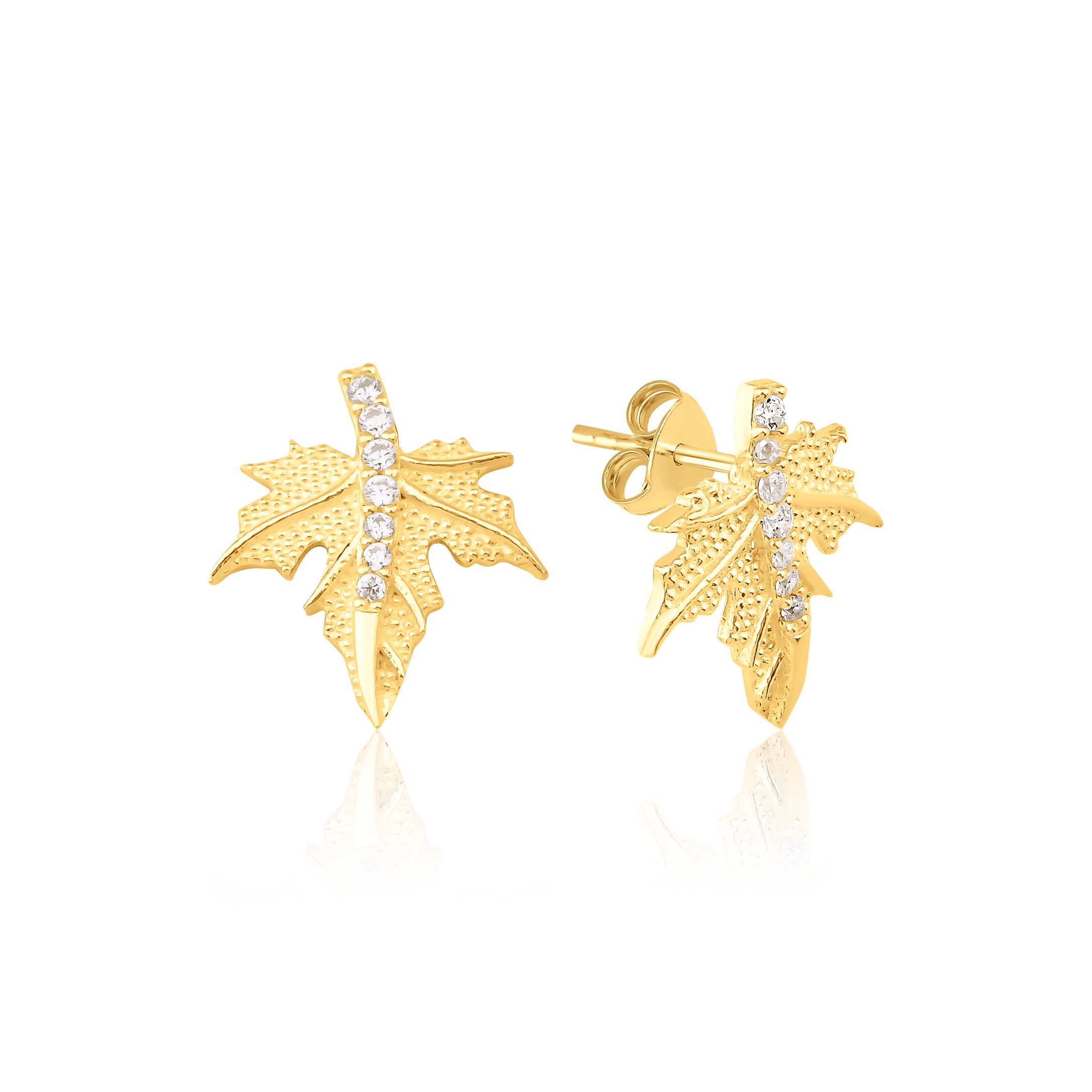 18K Gold Plated Sterling Silver, Diamond Maple Leaf Studs _ Canadian Jewelry _ Symbolic Gift for Her