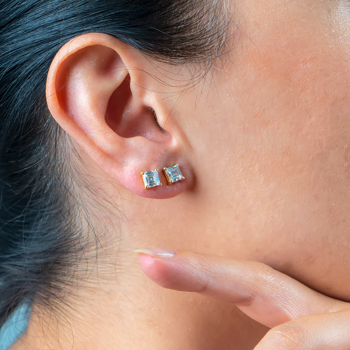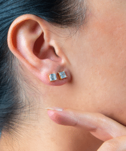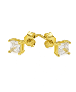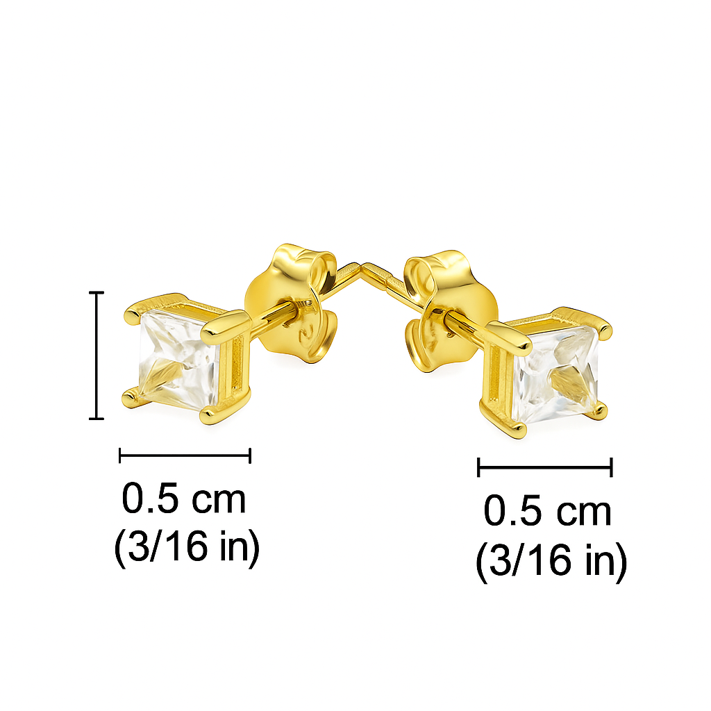 Handmade Square-Cut Diamond Stud Earrings – 18K Gold Plated Sterling Silver Minimalist Studs